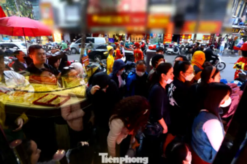 Tại một cửa hàng khác trên phố Trần Nhân Tông, lượng khách đến mua vàng cũng chật kín. Đến khoảng 10h sáng, cửa hàng đã phải thông báo tạm hết hàng. Với hai ngày nữa mới tới ngày vía Thần Tài, nhu cầu mua vàng được dự báo sẽ còn tăng mạnh hơn nữa. Đặc biệt, vào các khung giờ cao điểm, lượng khách đổ về các tiệm vàng có thể tăng đột biến, gây áp lực lớn lên nguồn cung và dịch vụ.