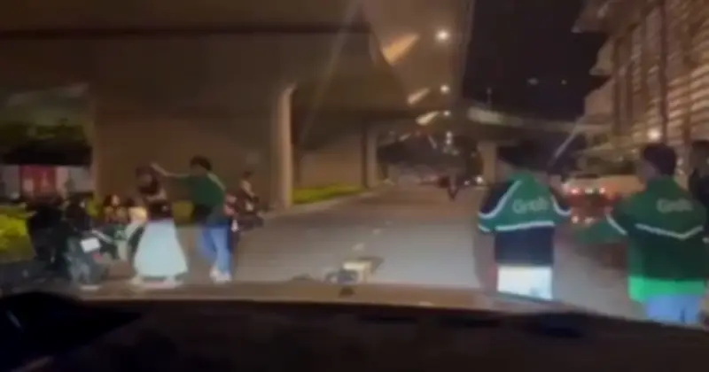 Cùng ngày, trên mạng xã hội đã lan truyền một đoạn clip ghi lại cảnh tượng hỗn loạn. Trong clip, một người đàn ông mặc đồng phục xe ôm công nghệ được nhìn thấy liên tục đập phá đồ đạc ngay giữa lòng đường. Đáng chú ý, khi một người phụ nữ đứng cạnh can ngăn, người này không những không dừng lại mà còn hung hăng vung tay dọa đánh.