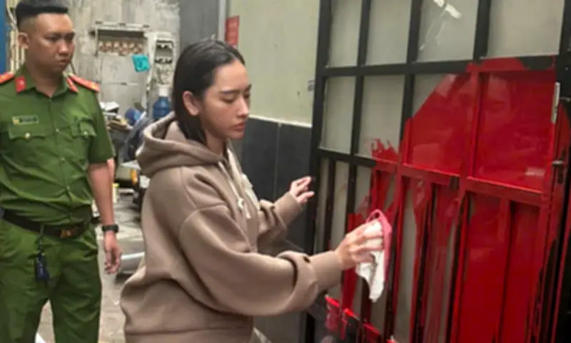 Cô tạt sơn vào cửa chính, sau đó vòng ra hẻm bên hông và cửa sau để tiếp tục hành động phá hoại. Hình ảnh từ camera an ninh đã ghi lại cảnh Tiên ở hiện trường, giúp cơ quan chức năng xác định nghi phạm.