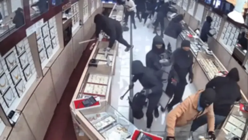 Một vụ cướp táo tợn đã xảy ra tại bang California, Mỹ, khi một băng nhóm tội phạm gồm khoảng 20 người đột kích vào tiệm trang sức Kumar Jewelers ở thành phố Fremont, lấy đi số tài sản trị giá 1,28 triệu bảng Anh (tương đương hơn 44 tỷ đồng) chỉ trong vòng 70 giây. Sự việc gây sốc sau khi giới chức công bố đoạn clip từ camera an ninh, tiết lộ chi tiết về cuộc tấn công được mô tả là "đánh úp tập thể".
