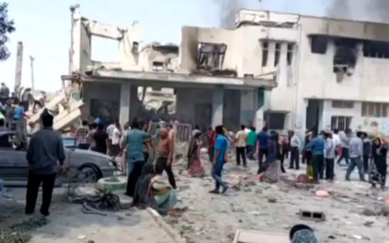 Hiện trường tại trường Shajareh Tayyebeh ở Minab cho thấy một cảnh tượng tang thương, với những đám bụi lớn bao trùm khi nhân viên cứu hộ đào bới đống đổ nát. Ngôi trường gần như bị san phẳng hoàn toàn, các bức tường còn sót lại đầy vết cháy xám và cửa sổ kính vỡ vụn.