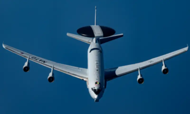 Máy bay E-3 Sentry, thường được mệnh danh là "máy bay mắt thần", nổi bật với khả năng phát hiện phi cơ từ khoảng cách hàng trăm km nhờ đĩa radar lớn gắn trên thân. Được phát triển từ khung máy bay chở khách Boeing 707, loại phi cơ này từng là xương sống trong đội hình của Không quân Mỹ, nhưng hiện chỉ còn 16 chiếc trong biên chế.
