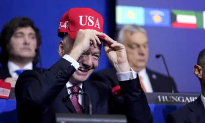 Khi Tổng thống Trump giới thiệu các đại biểu tham dự đều là nguyên thủ quốc gia, ngoại trừ ông Infantino, máy quay đã ghi lại cảnh Chủ tịch FIFA đội một chiếc mũ đỏ in chữ "USA" cùng với con số "45-47". Hai con số này được cho là ám chỉ hai nhiệm kỳ không liên tiếp của Tổng thống Trump. Tại sự kiện, ông Infantino cũng công bố FIFA đã ký kết một thỏa thuận hợp tác mang tính bước ngoặt với Hội đồng Hòa bình.