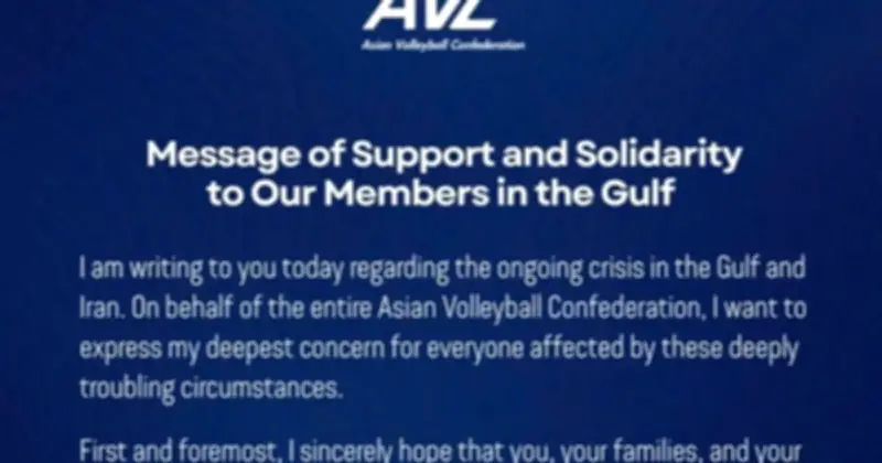 Ông Suzara tuyên bố: "Trong những thời khắc gian nan, cộng đồng bóng chuyền của chúng ta càng phải sát cánh bên nhau. AVC luôn sẵn sàng hỗ trợ các liên đoàn thành viên tại vùng Vịnh và Iran bằng mọi cách có thể. Chúng tôi cam kết sẽ đồng hành và giúp đỡ các vị vượt qua giai đoạn đầy thử thách này."