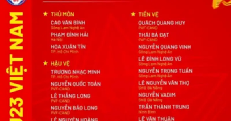Danh sách tập trung của đội tuyển U.23 Việt Nam cho đợt hội quân tháng 3 đã được Liên đoàn Bóng đá Việt Nam (VFF) công bố. Đáng chú ý, ở đợt tập trung quan trọng này, vị trí huấn luyện viên trưởng tạm thời không có sự hiện diện của thầy Kim Sang-sik. Thay vào đó, ông Đinh Hồng Vinh sẽ trực tiếp dẫn dắt đội bóng. Lý do là HLV Kim Sang-sik đang tập trung toàn lực cho nhiệm vụ ở đội tuyển quốc gia Việt Nam, với hai trận đấu sắp tới gặp Bangladesh (ngày 26.3, trận giao hữu) và Malaysia (ngày 31.3, thuộc khuôn khổ vòng loại Asian Cup 2027).