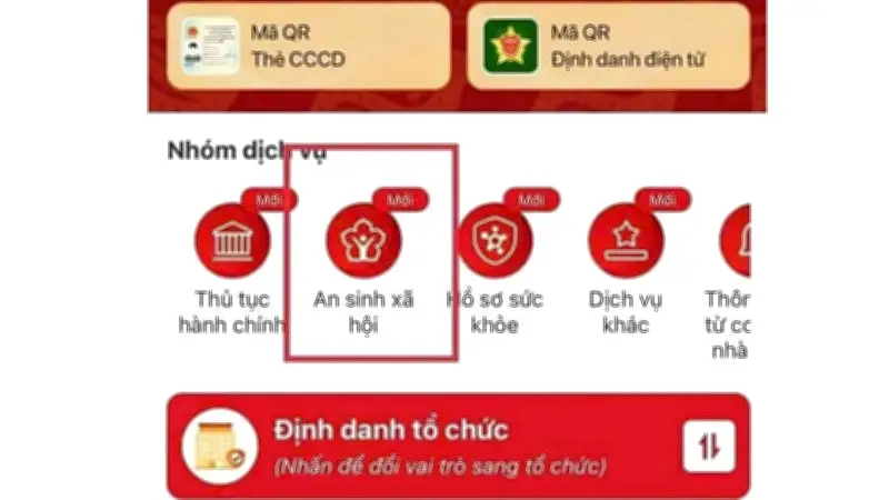 - Đầu tiên, đăng nhập vào ứng dụng VNeID và chọn mục "An sinh xã hội".