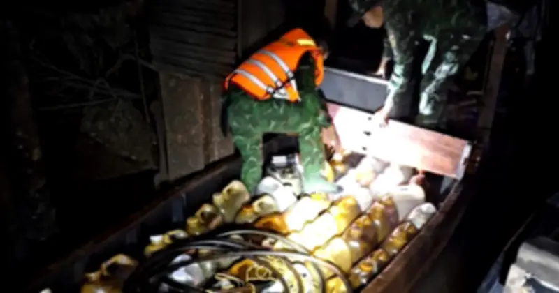 Khoảng gần 4 giờ sáng cùng ngày, lực lượng chức năng đã tiến hành theo dõi và phát hiện một chiếc ghe tam bản có dấu hiệu khả nghi đang hoạt động tại khu vực rạch Bình Châu, thuộc ấp 5, xã Bình Đại, tỉnh Vĩnh Long. Người điều khiển phương tiện được xác định là ông N.V.H, 53 tuổi, cư trú tại ấp Bình Thạnh 1, xã Thạnh Trị, cùng tỉnh Vĩnh Long. Sau khi dừng phương tiện để kiểm tra, lực lượng chức năng đã phát hiện trong khoang trước của ghe có chứa 30 can dầu, mỗi can có dung tích 30 lít, tổng cộng lên đến 900 lít dầu.