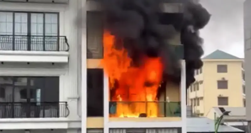 Vụ hỏa hoạn bắt đầu từ tầng 3 của căn nhà, nơi ngọn lửa đột ngột bốc cháy với cường độ mạnh. Lửa lan nhanh chóng chỉ trong vài phút, kèm theo cột khói đen đặc bốc lên ngùn ngụt, bao trùm một khu vực rộng. Hình ảnh từ hiện trường cho thấy ngọn lửa đỏ rực và khói đen dày đặc, gây hoang mang cho người dân xung quanh.