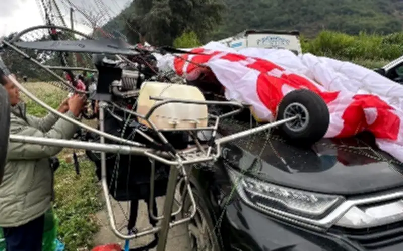 Dù lượn động cơ rơi trúng ô tô ở Hà Giang, suýt gây tai nạn nghiêm trọng