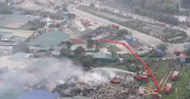 Để hỗ trợ thêm, Công an thành phố còn huy động 2 xe téc chở nước từ Xí nghiệp môi trường đô thị Thanh Trì, cùng với 4 máy xúc và 5 xe chở bê tông tươi. Các phương tiện này đã được đưa đến hiện trường nhằm tăng cường khả năng kiểm soát đám cháy, đảm bảo an toàn cho khu vực xung quanh.