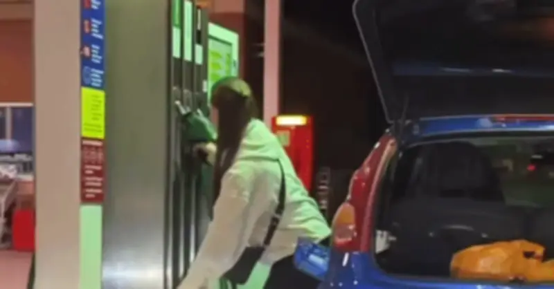 Clip gây sốc: Nữ tài xế dùng túi nilon đựng xăng, cất trong cốp xe để tích trữ