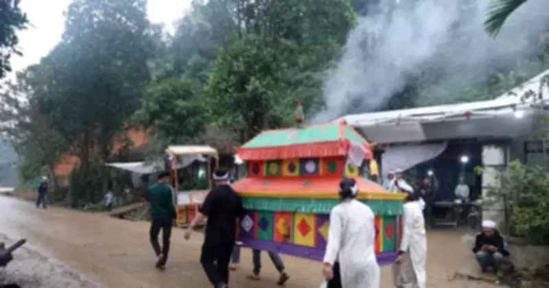 Ngày 23/2, bốn ngôi nhà liền kề tại thôn Ngòi Song, xã Cảm Nhân, tỉnh Lào Cai đều được phủ bạt trắng xóa, tạo nên một khung cảnh tang thương. Không khí ảm đạm bao trùm cả khu vực, với những tiếng khóc nghẹn ngào và lời gọi tên người đã khuất vang lên từ các gia đình. Bàn thờ tạm được lập trong từng ngôi nhà, khói hương nghi ngút tỏa ra, trong khi những cỗ xe quan kê ở khoảnh sân trước nhà chờ đợi để đưa tiễn linh cữu.