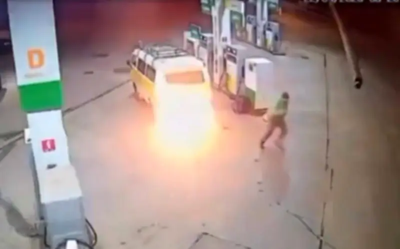 Một đoạn clip ghi lại cảnh một chiếc xe van cổ điển dừng lại bên cạnh trụ bơm xăng tại Boa Esperanca, bang Minas Gerais, Brazil, vào rạng sáng ngày 22 tháng 4. Vài phút sau, ngọn lửa bất ngờ bùng phát dưới gầm xe trong khi động cơ vẫn đang hoạt động, buộc nhân viên cây xăng và tài xế phải nhanh chóng rời khỏi hiện trường.