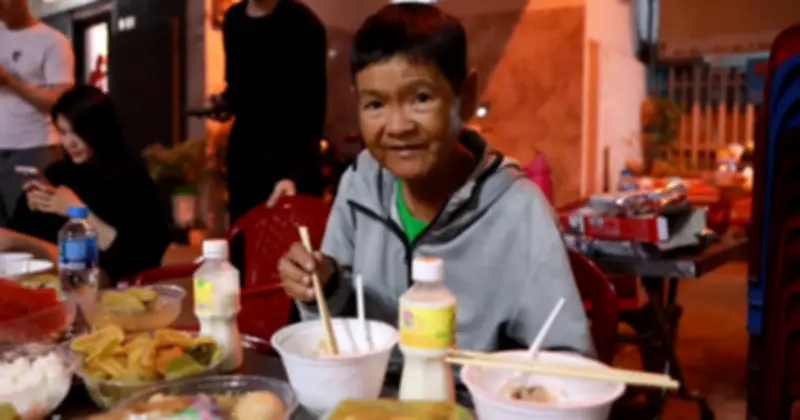 Bà Tú Chi (80 tuổi) vốn là người già neo đơn. Ngồi bên mâm cơm đoàn viên 0 đồng, ánh mắt bà lấp lánh niềm vui khó tả. Dưới ánh đèn đường vàng, những người xa lạ bỗng hóa người thân, cùng ngồi lại bên mâm cơm tất niên như một gia đình thực thụ.
