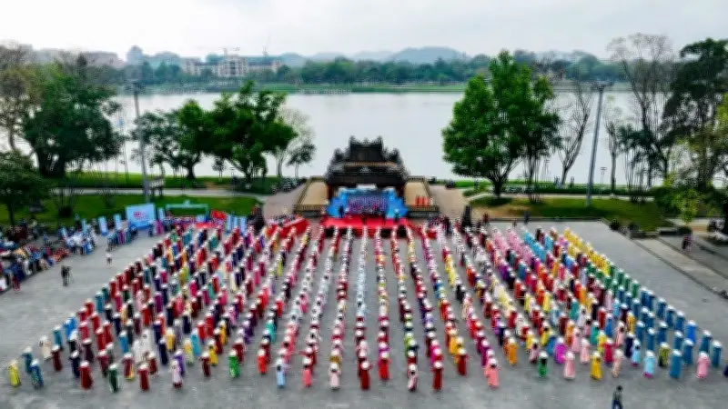 Ngày hội phụ nữ tại thành phố Huế đã diễn ra trong không khí sôi nổi, với điểm nhấn là màn đồng diễn dân vũ quy mô lớn. Sự kiện này thu hút sự tham gia của 1.000 hội viên, tất cả đều khoác lên mình tà áo dài truyền thống, tạo nên một hình ảnh đẹp mắt và đầy ý nghĩa. Trên nền nhạc "Xinh tươi Việt Nam" và "Ngày hội non sông", màn đồng diễn không chỉ mang đến không khí vui tươi mà còn lan tỏa hình ảnh người phụ nữ Huế với vẻ duyên dáng và năng động đặc trưng.