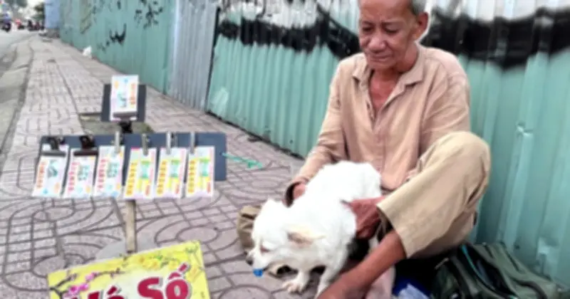 Một chiều tháng 3, khi cái nóng hầm hập từ mặt đường nhựa bắt đầu dịu đi, dưới chân cầu vượt ngã sáu Gò Vấp, chúng tôi bắt gặp ông Trần Văn Thanh, 72 tuổi, đang cặm cụi sắp xếp lại "quầy vé số" bé nhỏ của mình. Bên cạnh ông, chú chó nhỏ có bộ lông trắng muốt tên Kem đang ngoáy đuôi, dụi đầu vào đôi bàn tay thô ráp của người chủ nghèo khó.