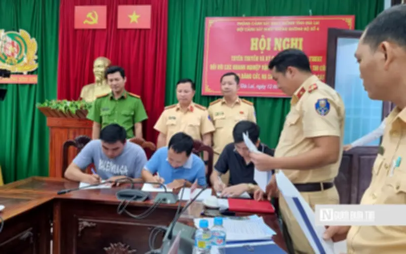 Ngày 13/3, Thượng tá Nguyễn Hồng Vang, Phó trưởng Phòng CSGT Công an tỉnh Gia Lai, cho biết chiều 12/3, Đội CSGT đường bộ số 4 đã tổ chức hội nghị tuyên truyền và ký cam kết đảm bảo trật tự an toàn giao thông (ATGT) với 18 doanh nghiệp vận tải tham gia thi công Dự án đường cất hạ cánh số 2 và các công trình đồng bộ Cảng hàng không Phù Cát.