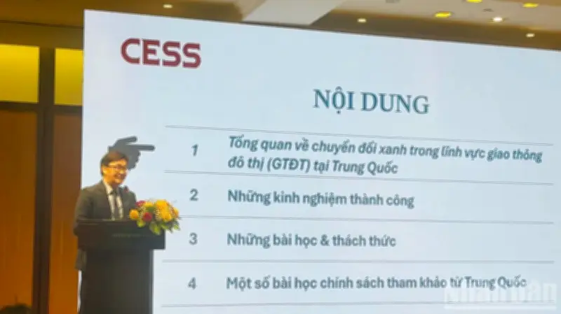 Trong khuôn khổ hội thảo, báo cáo chuyên đề về Kinh nghiệm thúc đẩy chuyển đổi giao thông xanh của Trung Quốc do Trung tâm Nghiên cứu Kinh tế và Chiến lược Trung Quốc (CESS) nghiên cứu và trình bày đã cung cấp thêm thông tin tham khảo cho quá trình nghiên cứu chính sách. Tiến sĩ Phạm Sỹ Thành - Giám đốc CESS chia sẻ kinh nghiệm từ Trung Quốc, nơi được xem như một điển hình về chuyển đổi giao thông xanh với sự trỗi dậy mạnh mẽ của xe năng lượng mới (NEV).