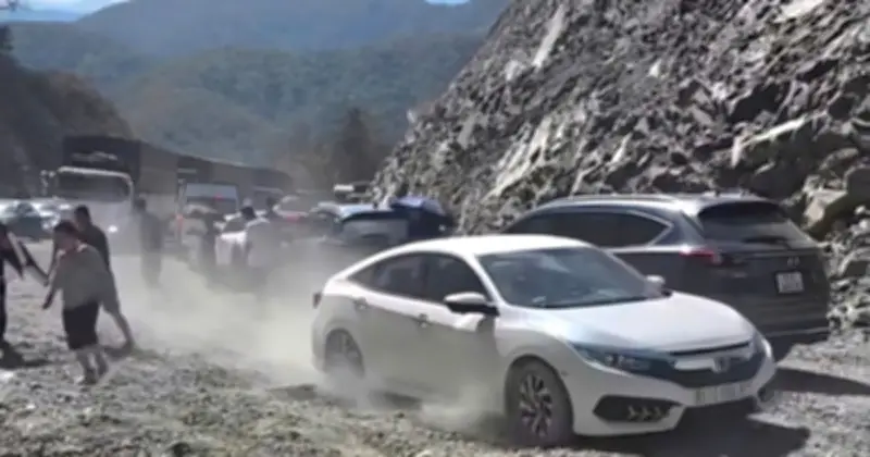 Tuy nhiên, khi lưu lượng xe tăng đột biến trong dịp Tết Bính Ngọ, mặt đường tạm nhanh chóng xuống cấp, xuất hiện nhiều rãnh sâu và độ chênh lớn. Nhiều ô tô gầm thấp bị cạ gầm và mắc kẹt giữa đường. Các xe phía sau không thể quay đầu, dẫn đến kẹt cứng cả hai chiều.