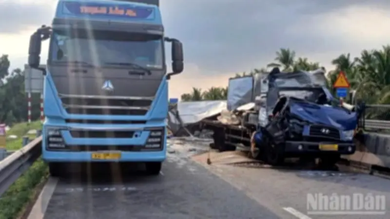 Vào khoảng 2 giờ ngày 23/2, tại km61 trên tuyến cao tốc Trung Lương-Mỹ Thuận, hướng từ Trung Lương về Mỹ Thuận thuộc xã Bình Trưng, tỉnh Đồng Tháp, một vụ tai nạn đã xảy ra giữa ô-tô khách do tài xế T.T.T. (sinh năm 1988, ngụ tỉnh An Giang) điều khiển và xe ô-tô con do N.T.S. (sinh năm 1993, tỉnh Đồng Tháp) điều khiển. Hậu quả, N.T.H.T. (sinh năm 1990, tỉnh Vĩnh Long) tử vong tại bệnh viện, trong khi N.N.A.B. (sinh năm 2021) bị thương nặng. Hai xe ô-tô bị hư hỏng nặng. Nguyên nhân ban đầu được xác định là do tài xế xe ô-tô khách không chú ý quan sát, đâm vào xe ô-tô con đang dừng đỗ có bật đèn cảnh báo nhưng không đặt biển cảnh báo phía sau.