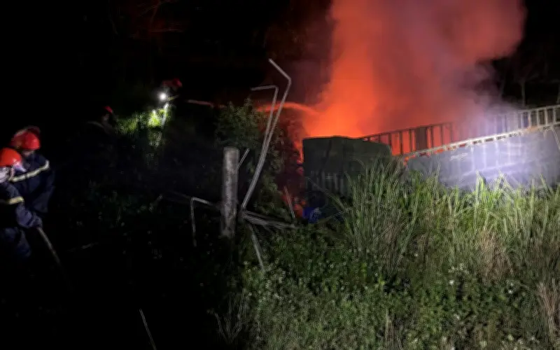 Sau khi xảy ra va chạm, chiếc xe đầu kéo đã lao xuống vệ đường và bốc cháy dữ dội. Ngọn lửa bùng phát mạnh mẽ, thiêu rụi phần đầu xe và gây hư hỏng nặng nề. Tài xế Nguyễn Ngọc M. đã tử vong ngay tại hiện trường, để lại một cảnh tượng đau lòng cho những người chứng kiến.