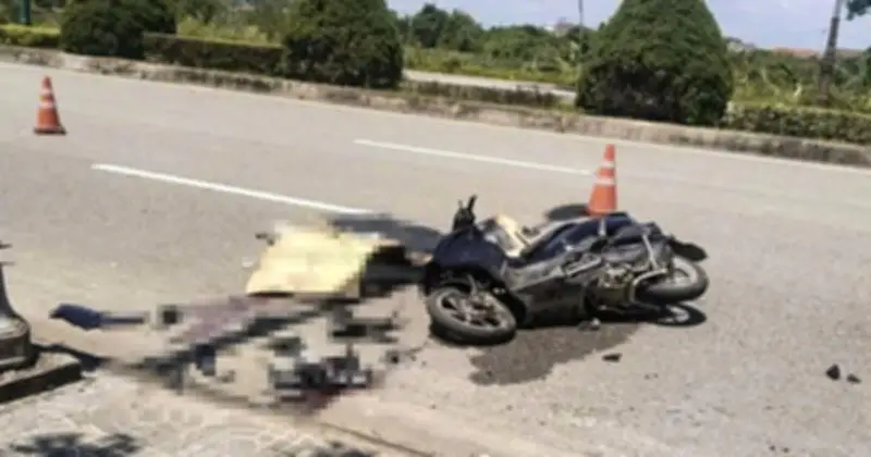 Khi đến Km 43+420 thuộc tổ dân phố Ngọc Thạch, phường Trương Quang Trọng, thành phố Quảng Ngãi, chiếc xe máy bất ngờ lao sang bên phải. Nó đâm mạnh vào một trụ điện chiếu sáng được đặt trên vỉa hè, gây ra hậu quả thương tâm.