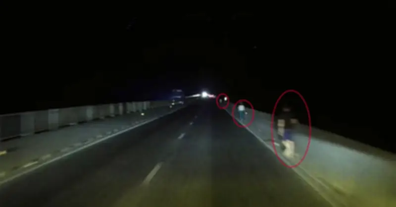 Theo lời kể của tài xế, vào một đêm tối, khi đang di chuyển với tốc độ cao trên cao tốc, anh bất ngờ nhìn thấy ba bóng người đang đi bộ ngay trên làn đường dành cho xe cơ giới. Khoảnh khắc đó khiến anh thót tim và phải phanh gấp để tránh va chạm. Tình huống này có thể dẫn đến tai nạn nghiêm trọng nếu không được xử lý kịp thời.