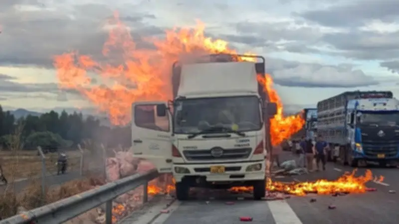 Vào khoảng 17 giờ ngày 04/02/2026, một chiếc xe tải mang biển số 72H-029.72 đang lưu thông trên cao tốc Vĩnh Hảo-Phan Thiết, theo hướng từ bắc xuống nam. Khi đến Km176, đoạn qua địa phận xã Lương Sơn, tài xế bất ngờ phát hiện ngọn lửa bùng lên từ phía sau thùng xe.