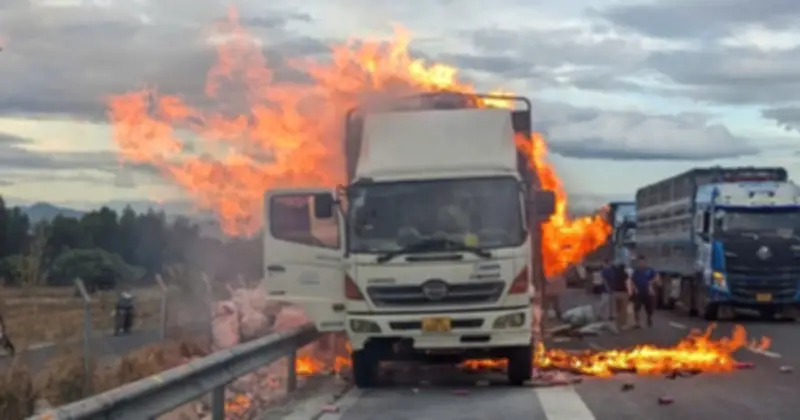 Mặc dù nhiều bao hàng hóa trên thùng xe đã được đưa xuống mặt đường nhằm hạn chế thiệt hại, nhưng ngọn lửa sau đó bùng phát mạnh mẽ và nhanh chóng bao trùm toàn bộ thùng xe. Hình ảnh từ hiện trường cho thấy chiếc xe tải bốc cháy nằm ở dải dừng khẩn cấp, với khói đen cuồn cuộn bốc lên cao.