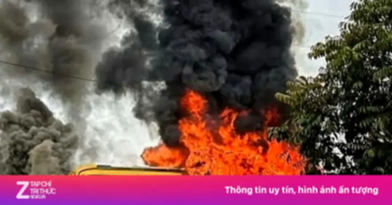Xe khách 40 chỗ bốc cháy dữ dội tại cổng Khu công nghiệp Vân Trung