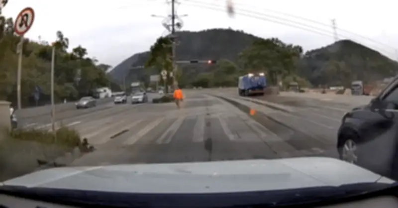 Một vụ tai nạn giao thông hy hữu vừa xảy ra trên đường phố, khi một chiếc xe mini 2 chỗ đang dừng chờ đèn đỏ bất ngờ bị một chiếc xe đầu kéo tông từ phía sau. Cú va chạm mạnh khiến chiếc xe nhỏ bị đẩy đi xa hàng chục mét trước khi dừng lại.