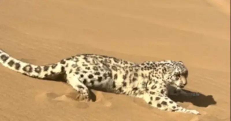 Theo lời kể của những người chứng kiến, trong lúc đoàn xe dừng lại nghỉ ngơi, một du khách đã vô tình nhìn thấy một con vật với bộ lông đen trắng đặc trưng di chuyển chậm chạp trên đụn cát gần đó. Chỉ sau vài giây quan sát, họ nhận ra đây không phải là động vật thông thường, mà chính là báo tuyết – loài thú quý hiếm được xếp vào nhóm bảo vệ cấp quốc gia.