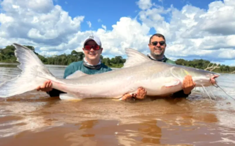 Trong một câu chuyện đáng kinh ngạc từ vùng nông thôn Brazil, hai anh em Jardem Martins Parreira, 40 tuổi, và Jadson Martins Parreira, 38 tuổi, những người sản xuất nông nghiệp, đã đạt được ước mơ sau nhiều năm khi bắt được một con cá trê piraíba dài 2 mét. Sự kiện này diễn ra vào ngày 7/4, trong một chuyến đi câu cá trên sông Araguaia, tại khu vực Luiz Alves, thuộc huyện São Miguel do Araguaia, Brazil, đánh dấu một khoảnh khắc đáng nhớ trong hành trình 9 năm đánh bắt cá của họ.