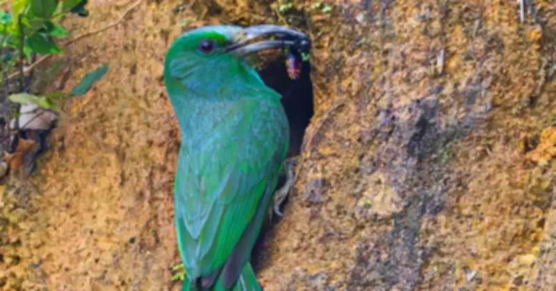 Khoảnh khắc xúc động: Chim trảu xanh mớm mồi cho con non ở vách đất Sơn Trà