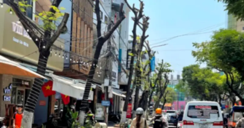 Những ngày gần đây, người dân sinh sống và lưu thông qua các tuyến đường Phan Châu Trinh và Lê Lợi thuộc phường Hải Châu, thành phố Đà Nẵng, không khỏi bàng hoàng khi chứng kiến cảnh tượng hàng loạt cây xanh lâu năm từng tỏa bóng mát nay chỉ còn trơ trọi thân cây giữa trời nắng nóng gay gắt. Sự thay đổi đột ngột này đã biến diện mạo những con phố trung tâm trở nên khô khốc, thiếu sức sống, gây ảnh hưởng trực tiếp đến đời sống người dân.