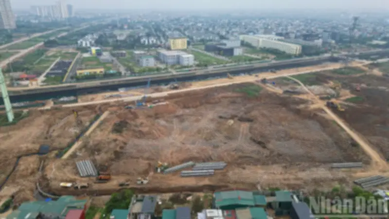 Trên công trường, các công nhân đang hăng say làm việc, trong khi xe tải nối đuôi nhau vận chuyển đất đào ra ngoài. Các đơn vị thi công đã huy động máy móc tập trung triển khai các hạng mục, nhằm đảm bảo tiến độ dự án được đẩy nhanh. Sự nỗ lực này góp phần quan trọng vào việc hoàn thành công trình đúng kế hoạch.