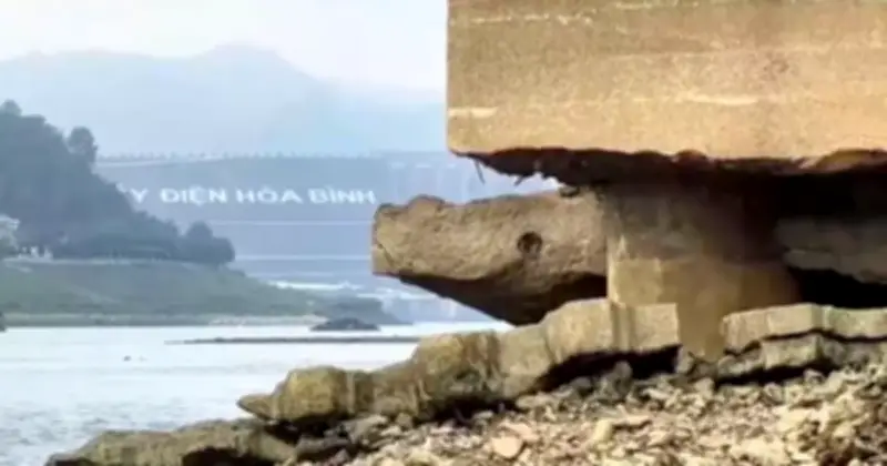 Ngày 7/3, tại khu vực hạ lưu Thủy điện Hòa Bình thuộc tỉnh Phú Thọ, mực nước sông Đà đã giảm rõ rệt so với cùng thời điểm năm 2025. Hiện tượng này khiến nhiều bãi sỏi ven bờ lộ rõ, và đặc biệt, một số mố trụ cầu Hòa Bình – vốn thường nằm ẩn dưới mặt nước – nay hiện ra một cách rõ rệt. Theo ghi nhận của phóng viên, dòng sông rút nhanh làm lộ các bãi đá và cồn cát giữa lòng sông, tạo nên cảnh tượng hiếm gặp.