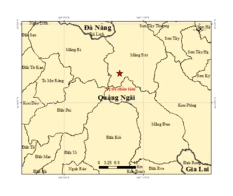 Địa điểm xảy ra động đất nằm ở vùng giáp ranh giữa tỉnh Quảng Ngãi và Kon Tum, cụ thể là tại xã Măng Đen và Măng Bút, huyện Kon Plông. Khu vực này đã từng ghi nhận nhiều trận động đất nhỏ trong thời gian gần đây, cho thấy hoạt động địa chấn đang diễn ra khá tích cực.
