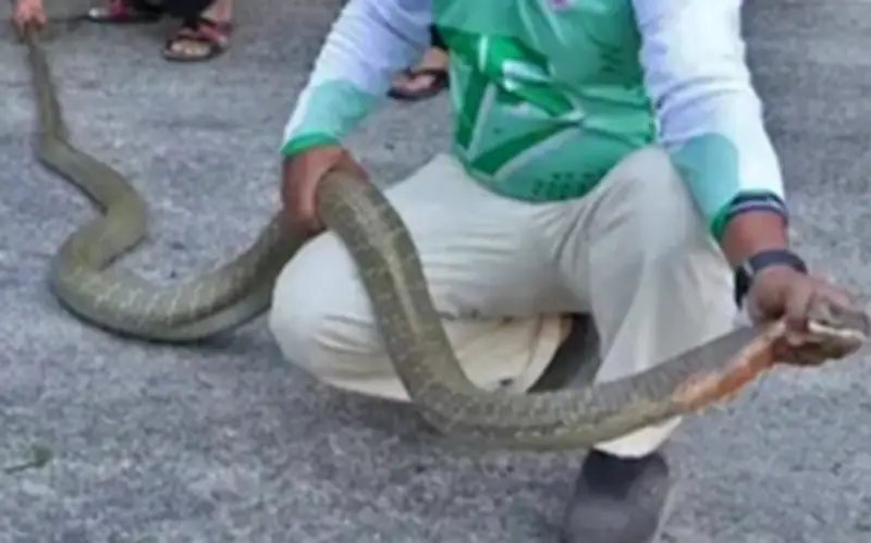 Người dân tại một ngôi làng ở tỉnh Yala, miền nam Thái Lan, đã trải qua cảm giác vô cùng hoảng sợ sau khi bắt gặp ba con rắn hổ mang chúa có kích thước lớn, trong đó hai con đang tham gia vào một cuộc ẩu đả kịch liệt. Sự việc xảy ra ở khu vực phía sau một tòa nhà cũ, khiến cư dân địa phương phải gọi ngay cho lực lượng cứu hộ để được hỗ trợ bắt giữ những con rắn nguy hiểm này.