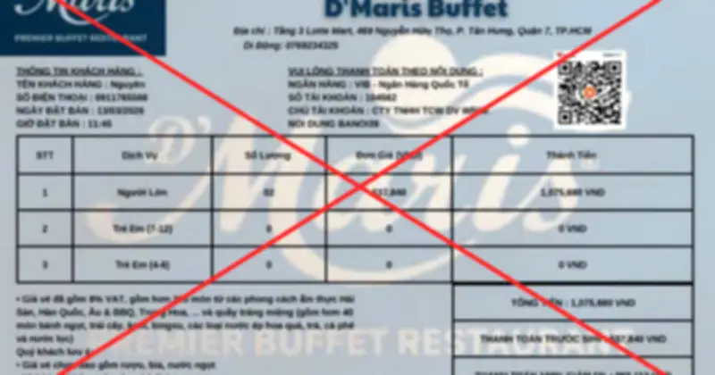 Theo phản ánh, chị N.A. (ngụ TPHCM) đã trở thành nạn nhân của một fanpage mạo danh nhà hàng D'Maris Buffet. Vào trưa ngày 13-3, khi tìm kiếm thông tin đặt chỗ ăn buffet trên mạng xã hội, chị phát hiện fanpage mang tên "D'Maris Premier Buffet Sài Gòn" với khoảng 43.000 người theo dõi. Tin rằng đây là trang chính thức, chị liên hệ đặt bàn cho 2 người tại chi nhánh Phú Mỹ Hưng.