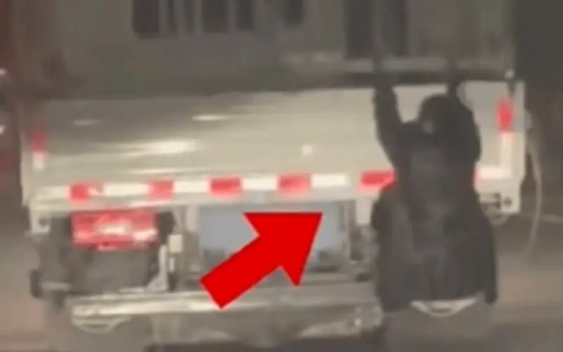 Khoảng 9 giờ tối, khi các sĩ quan cảnh sát giao thông đang làm nhiệm vụ tại một giao lộ, họ nhận thấy một chiếc xe tải chạy qua. Điều đáng kinh ngạc là có một người đang bám vào phía sau xe mà không có bất kỳ thiết bị an toàn nào. Sau khi quan sát kỹ, họ phát hiện đó là một người phụ nữ, treo lơ lửng bên ngoài xe chỉ bằng tay không, trong tình trạng cực kỳ nguy hiểm.