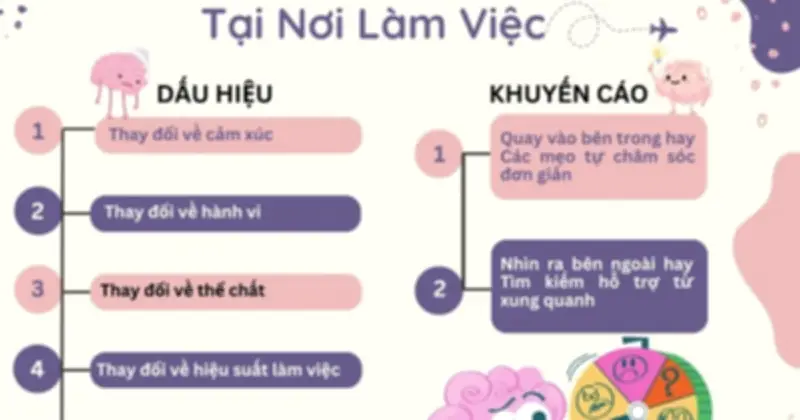 Thay đổi về hiệu suất công việc: Chuyên gia sức khỏe tâm thần lưu ý về sự suy giảm năng suất, với việc khó hoàn thành công việc đúng hạn và chất lượng công việc giảm sút do nhiều sai sót. Tình trạng vắng mặt thường xuyên vì lý do sức khỏe hoặc cá nhân cũng là dấu hiệu đáng quan tâm.