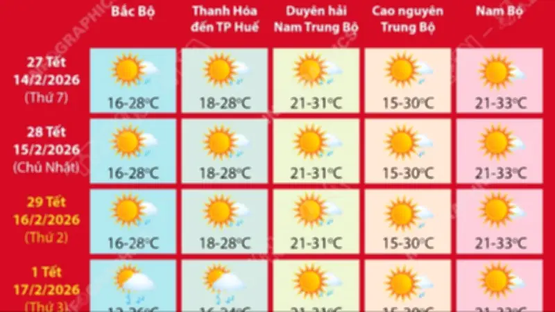 Nhìn chung, dự báo thời tiết Tết Bính Ngọ 2026 hứa hẹn mang lại một kỳ nghỉ lễ an lành và thuận lợi cho mọi người dân trên khắp đất nước Việt Nam.