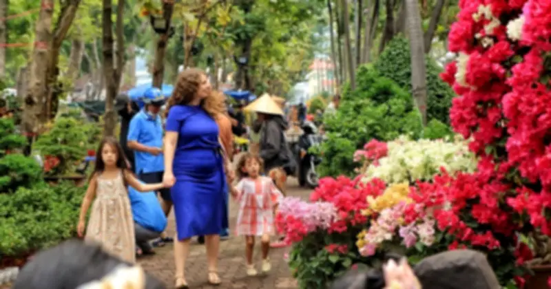 Nhiều gia đình, cả người Việt lẫn người nước ngoài, tỏ ra vô cùng thích thú khi ngắm nhìn những chậu hoa và vật phẩm trang trí đa dạng. Một nữ khách Tây đã không khỏi ngạc nhiên khi thấy quá nhiều hoa được bày bán ngay giữa lòng thành phố, minh chứng cho sự phong phú của chợ hoa Tết.