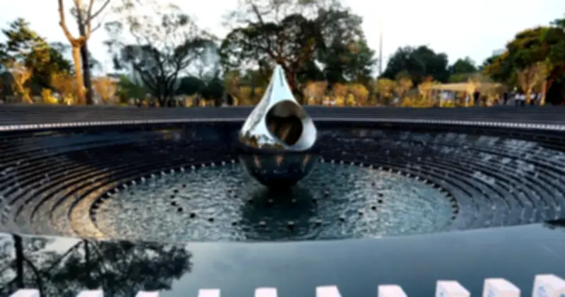 Trung tâm của công viên là một quảng trường tròn rộng khoảng 1.800 mét vuông, lấy cảm hứng từ hình ảnh giọt nước rơi xuống mặt đất. Biểu tượng này đại diện cho ký ức đau thương của đại dịch Covid-19 và sự lan tỏa của tình yêu thương, lòng trắc ẩn. Tượng đài Giọt nước, cao 6 mét với chu vi 13 mét, được chế tác từ inox gương, bên trong chứa hình ảnh trái tim tượng trưng cho sự tri ân và nhân ái. Bao quanh tượng đài là 9 bậc cấp và 360 ngọn nến nước, tạo nên một không gian trang nghiêm và xúc động.