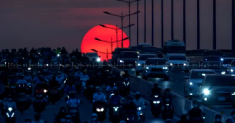 Chiều muộn, khu vực cầu bộ hành metro tại TP.HCM đông nghịt người, tạo nên một khung cảnh nhộn nhịp hiếm thấy. Từ khoảng 16 giờ, nhiều người đã có mặt để chọn vị trí, dựng chân máy và chuẩn bị thiết bị, tất cả đều hướng đến một mục tiêu chung: săn khoảnh khắc hoàng hôn "mặt trời trứng muối" được cho là đẹp nhất trong năm.