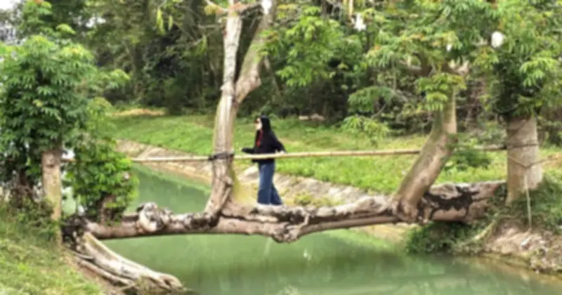 Thân cây gòn to nằm vắt ngang mặt kênh, bên dưới là dòng nước xanh trong, tạo nên bối cảnh chụp hình rất đẹp và độc đáo. Nhiều người đã chạy xe máy, ô tô hàng chục km từ trung tâm TP.HCM đến đây chỉ để được ghi lại khoảnh khắc đặc biệt này, biến nơi đây thành một điểm đến thu hút không ngờ giữa lòng thành phố.