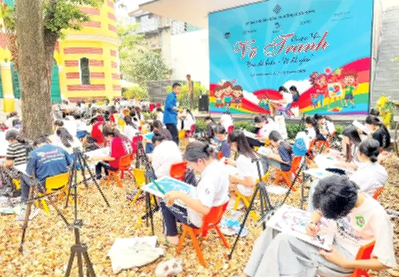 Ngoài ra, hội thi vẽ tranh theo nội dung cuốn sách yêu thích với chủ đề “Văn hóa đọc - Lan tỏa từ những nét vẽ” đã tạo nên một không khí sôi nổi, tràn đầy màu sắc. Những nét vẽ ngây thơ của các em minh chứng rằng sách vẫn luôn là người bạn đồng hành tuyệt vời nhất của tuổi thơ. Ban tổ chức còn triển khai các trò chơi dân gian như ô ăn quan, cờ vua, cờ tướng trong không gian đọc, tạo nên một sân chơi tri thức vừa gần gũi, vừa sinh động.