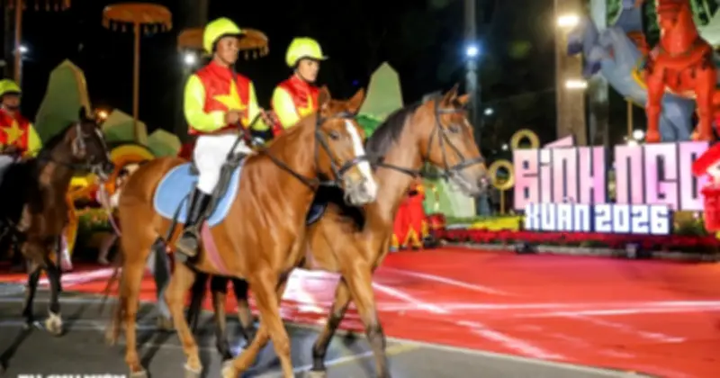 Buổi lễ khai mạc được bắt đầu với màn biểu diễn trống và múa rồng đầy ấn tượng, tạo nên không khí sôi động và thu hút sự chú ý của mọi người. Tiếp theo đó là tiết mục diễu hành độc đáo của 8 chú ngựa đua đến từ Lâm Đồng, mang đến một hình ảnh sống động và ý nghĩa cho năm Ngọ 2026.