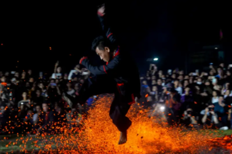Nghệ nhân trẻ Pà Thẻn thực hiện màn nhảy lửa huyền bí tại lễ hội Tuyên Quang